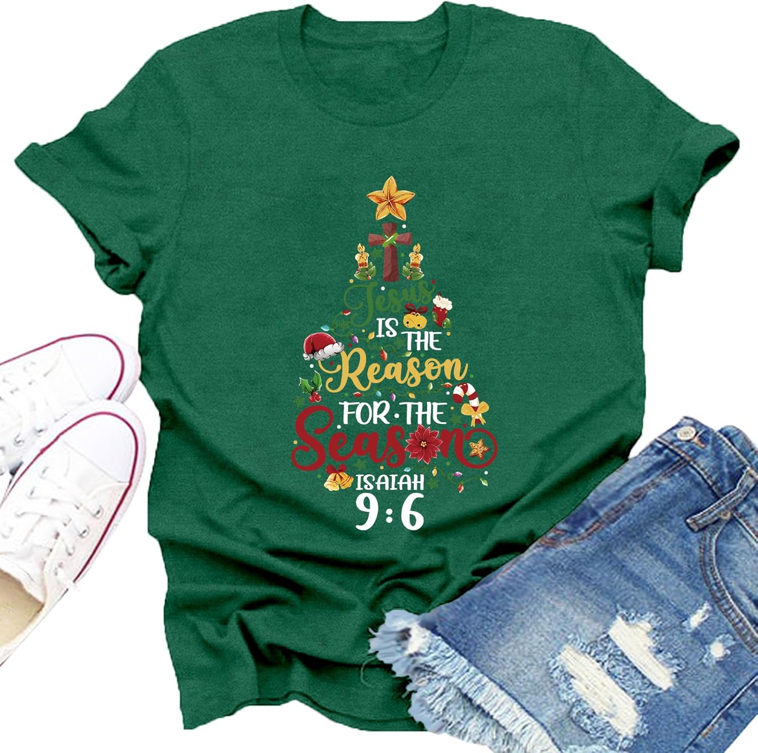 Christmas Shirts for Women Jesus Christmas T-Shirt Jesus is The Reason for The Season Tee Tops