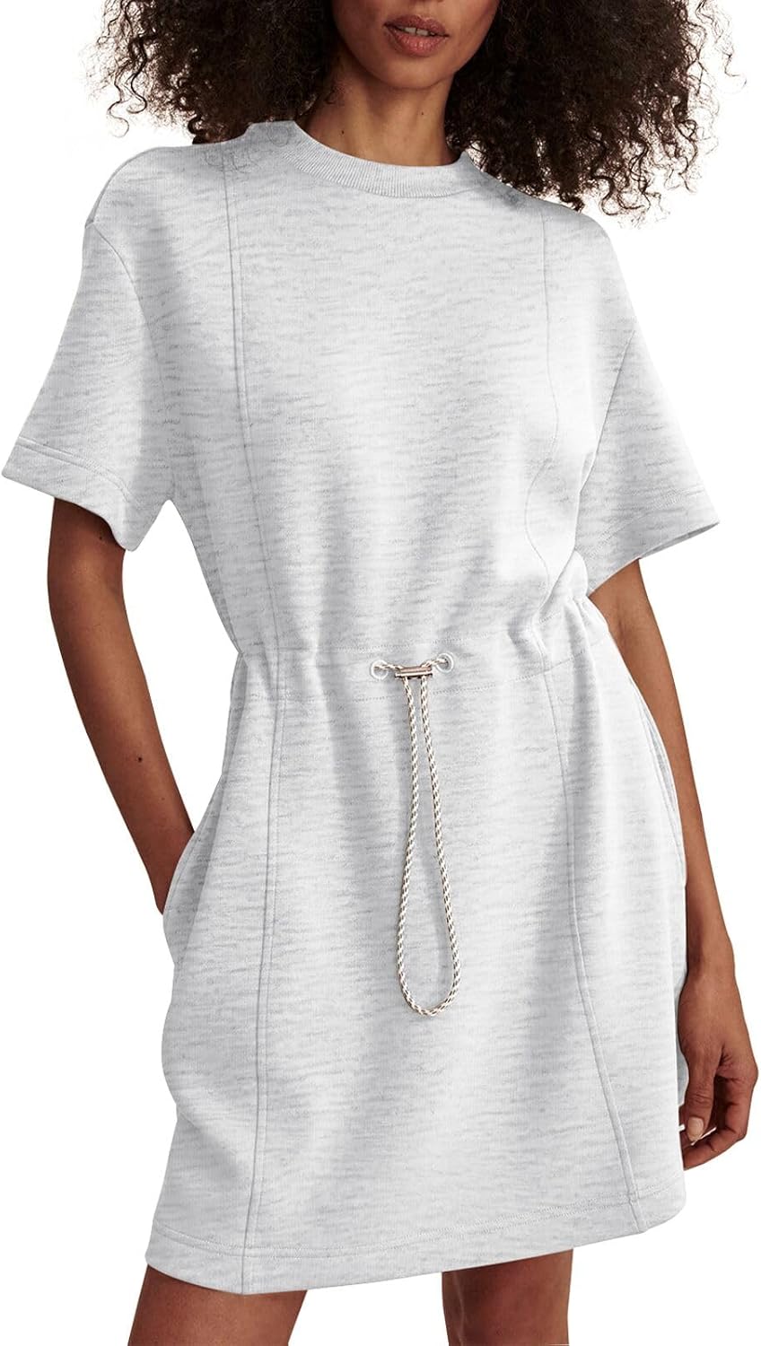 COCOMARTS Dresses for Women Summer Short Sleeve Crew Neck Sweatshirt Dress Drawstring Waist Tunic Tops Mini Vacation Sundress