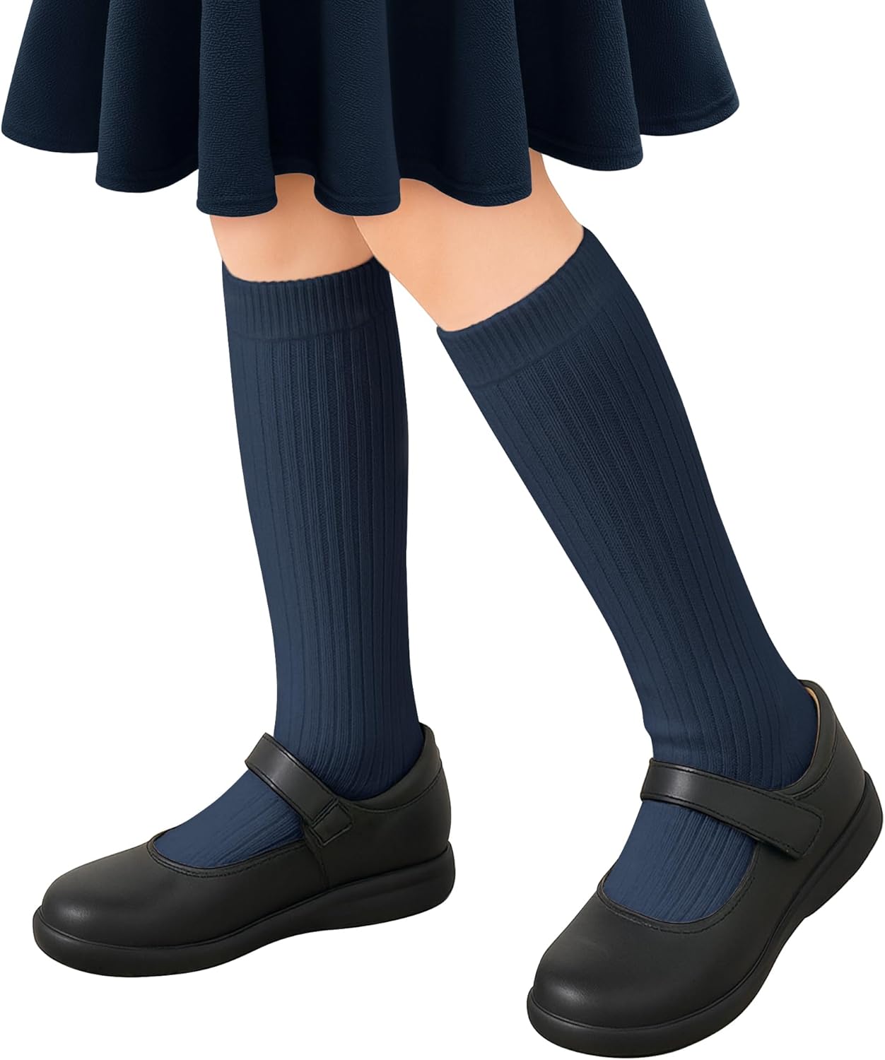 Stelle Girls Knee High Socks Cotton School Uniform Socks 3 Pairs Long Soft Seamless Sock for Kids Toddler 3-18 Years