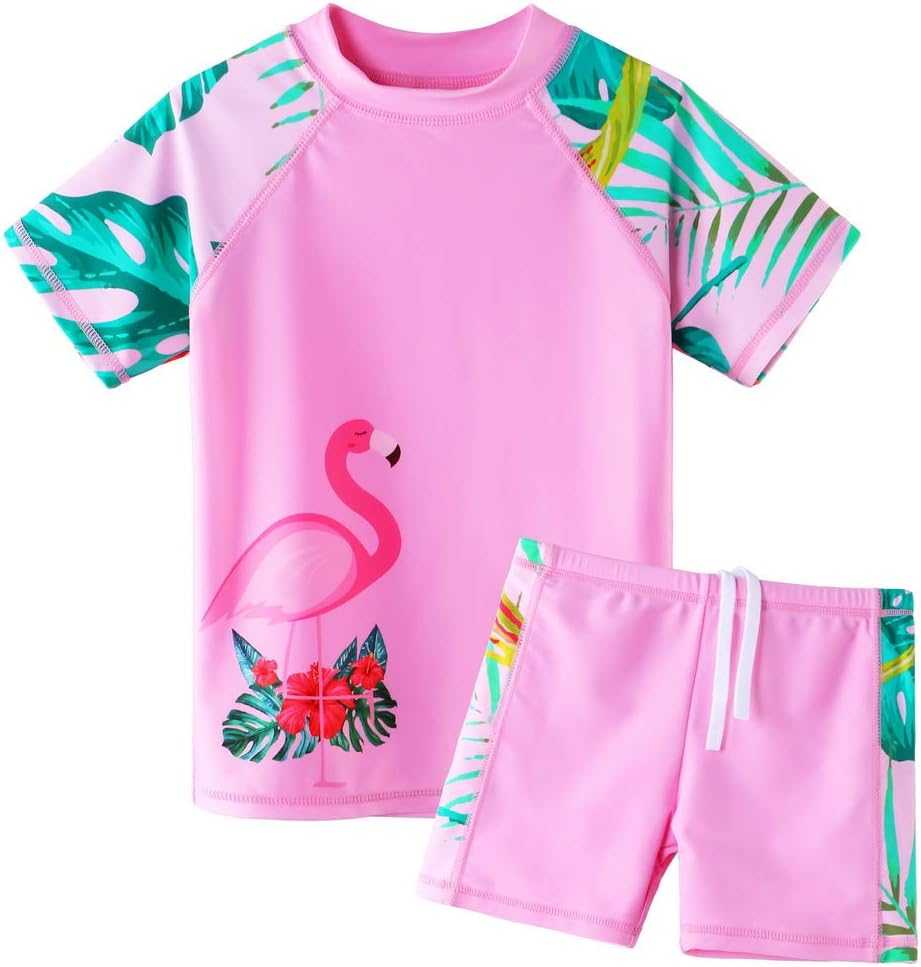 Girls Two Piece Swimsuit Floral UPF 50+ Rash Guard Set Kids Beach Swimwear