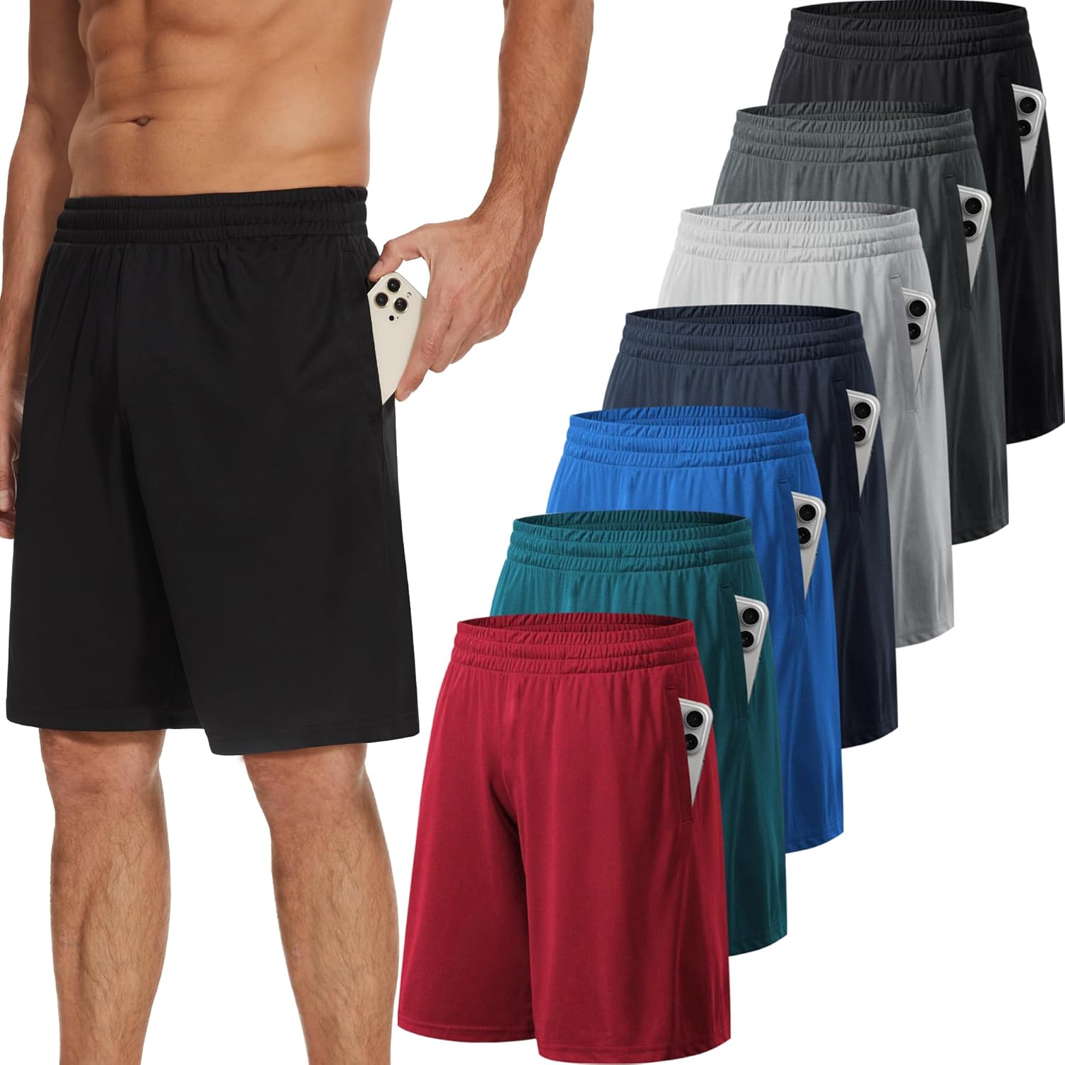TVKSOM 7 Pack Mens Athletic Shorts with Pockets and Elastic Waistband Quick Dry Basketball Shorts Men for Running Casual