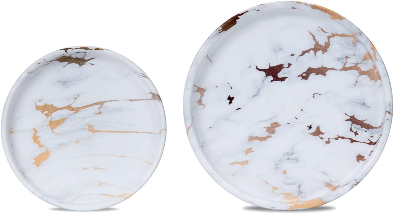 Ceramic Plant Saucer | Plant Trays for Indoors | Drip Tray | Plant Pot Saucers (4in + 6in, White and Gold)