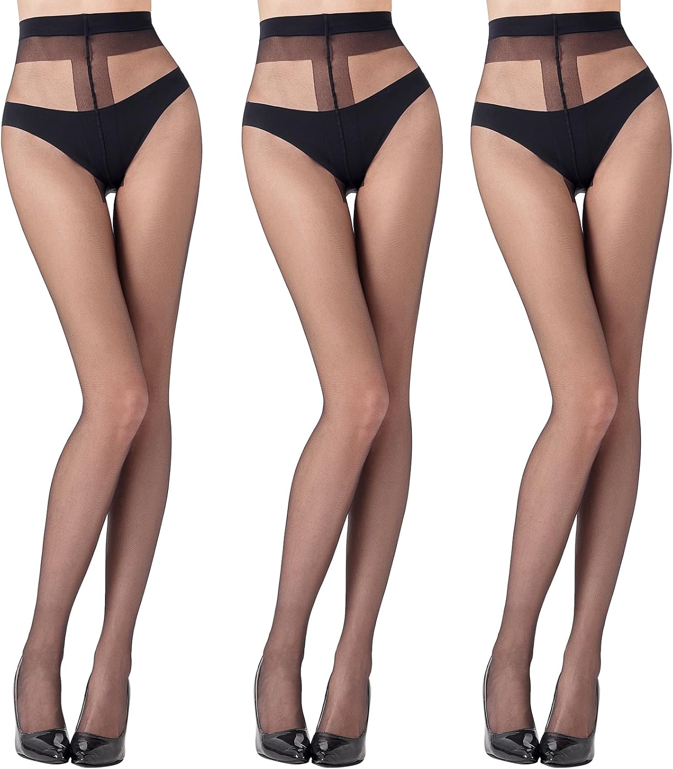 3 Pairs Sheer Pantyhose for Women T-Crotch Tights 20D Ultra Thin High Waist Stockings