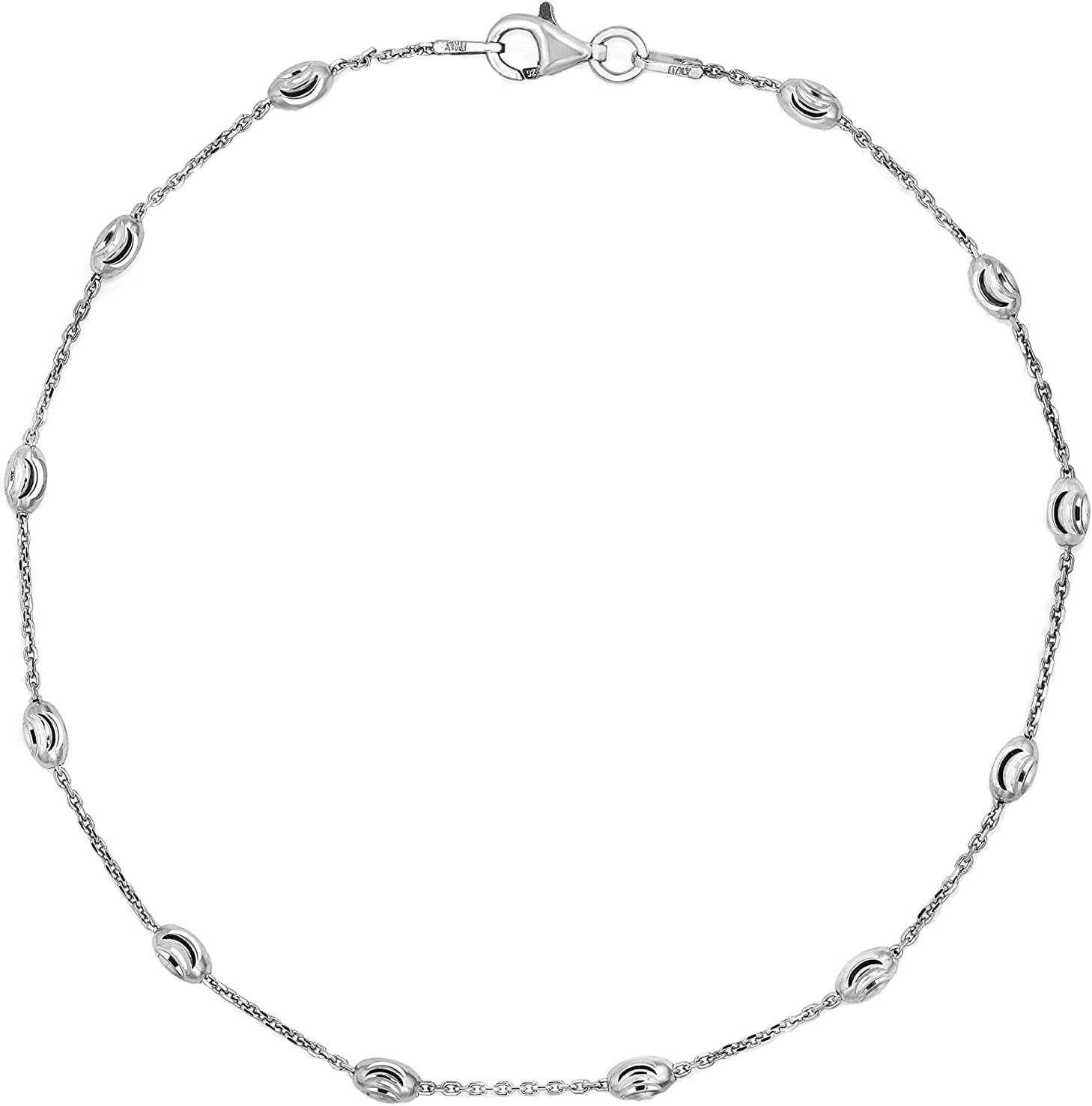Savlano 18K Gold Plated Over 925 Sterling Silver Station Oval Moon Bead Anklet Chain For Women. Silver, Gold, Rose Gold - Made in Italy Comes With a Gift Box
