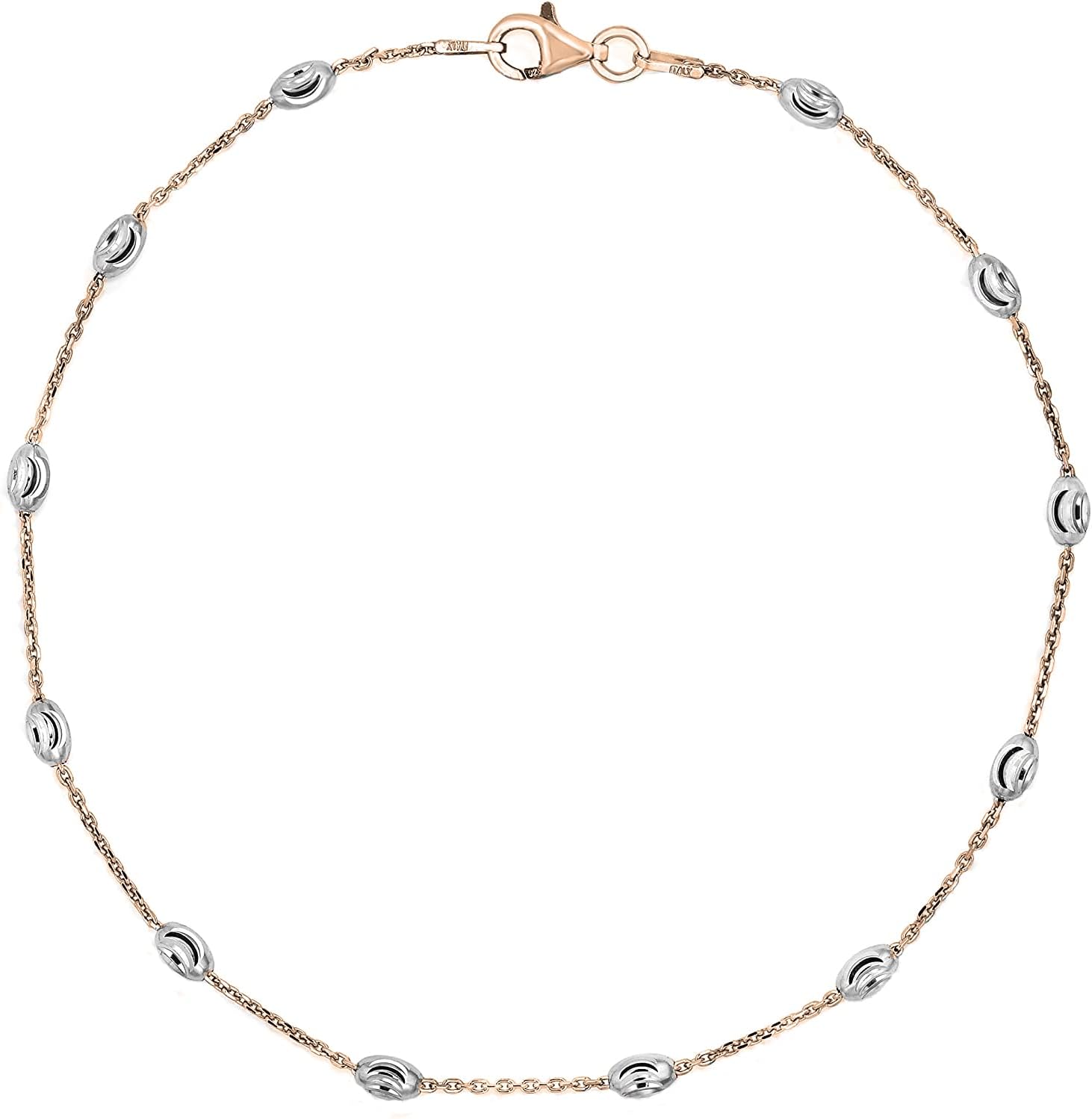 Savlano 18K Gold Plated Over 925 Sterling Silver Station Oval Moon Bead Anklet Chain For Women. Silver, Gold, Rose Gold - Made in Italy Comes With a Gift Box