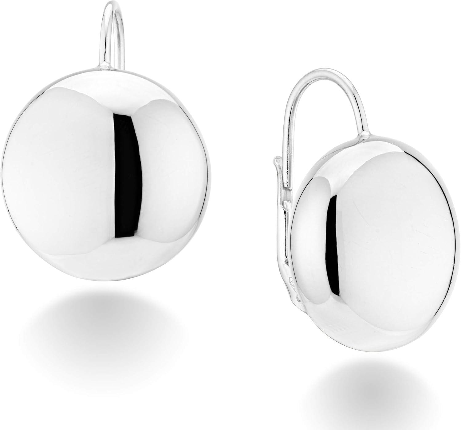 Miabella 925 Sterling Silver Italian High Polished Round Dome Button Bead Ball Statement Leverback Earrings for Women, Made in Italy