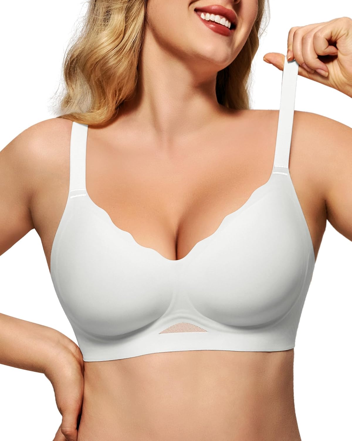 HORISUN Women's Wireless Push Up Bralette - No Underwire Scalloped V-Neck Full Coverage Soft Support Bra