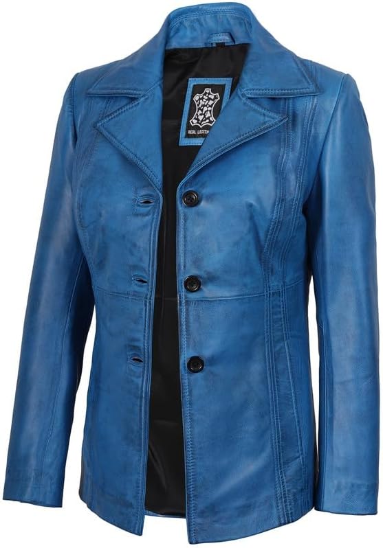 Decrum Leather Blazers for Women - Stylish Blazer Style Casual Real Lambskin Leather Jacket Women
