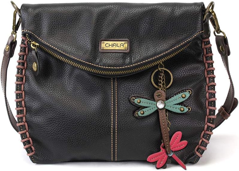 Chala Charming Crossbody Bag Shoulder Handbag With Flap Top and Zipper Black/Dark Brown