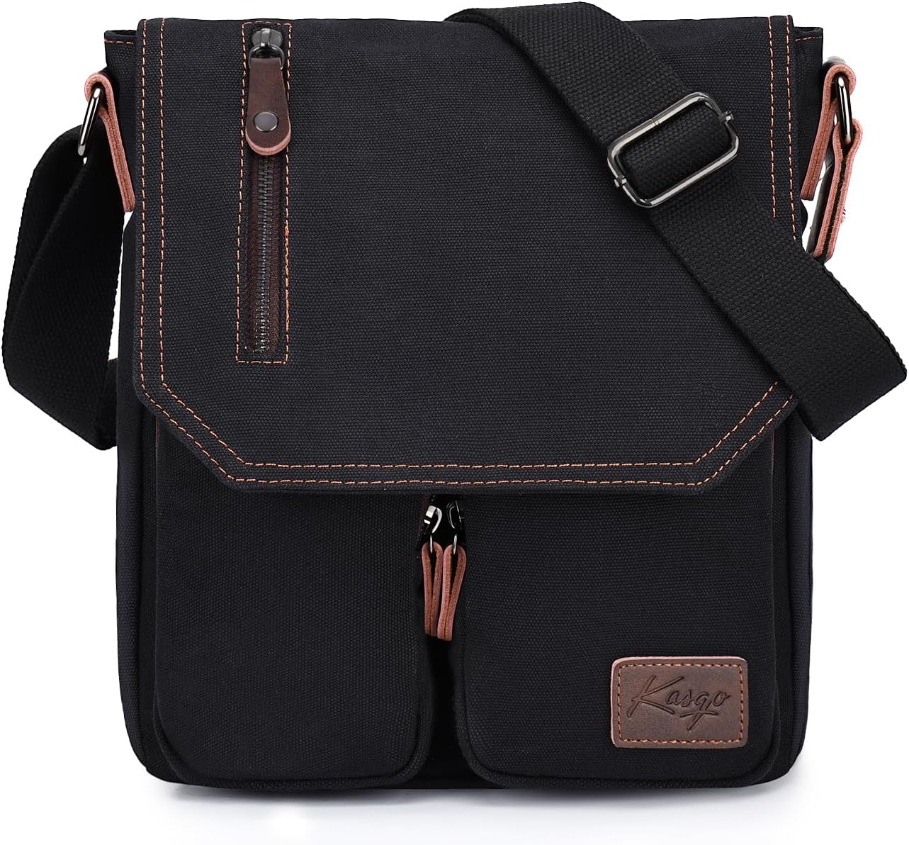 Kasqo Small Messenger Bag for Men, Vintage Canvas Crossbody Shoulder Bags for Women, Anti-Theft Purse for Travel Work