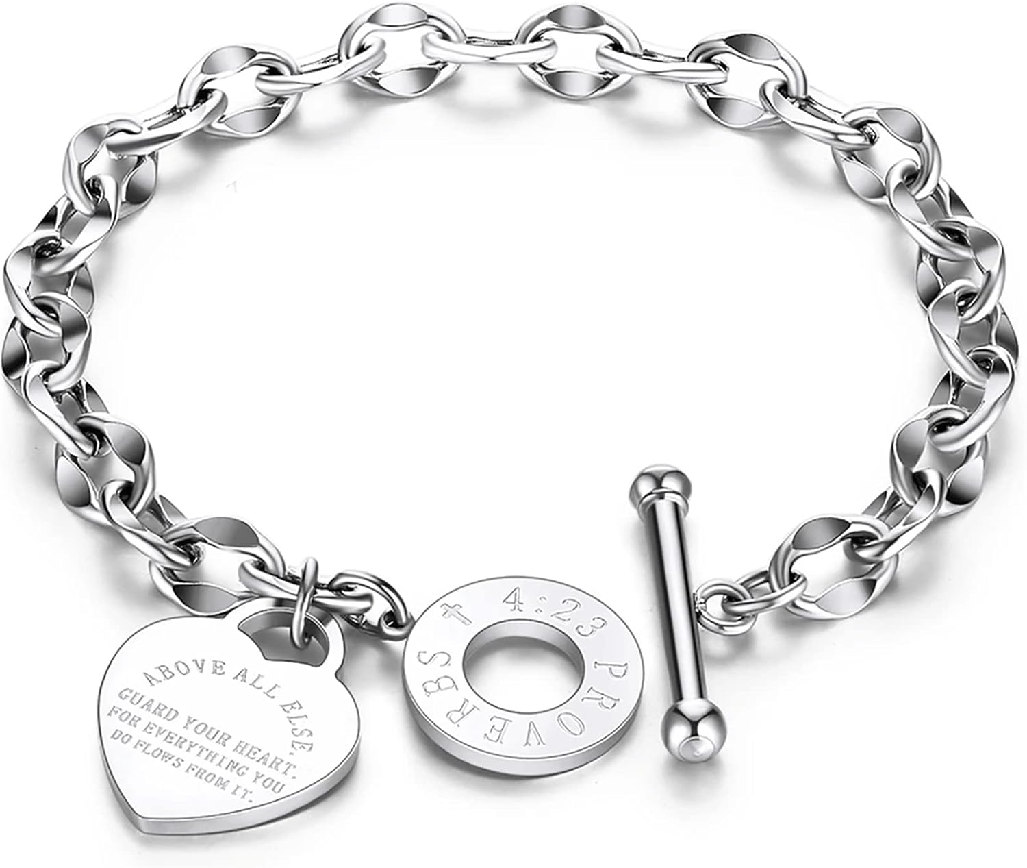 VQYSKO Heart Charm Bracelet for Women-18k Gold Plated Silver/Rose Gold OT Clasp Girls Stainless Steel Bangle,Mother's Day Valentine's Day Christmas Birthday Gift