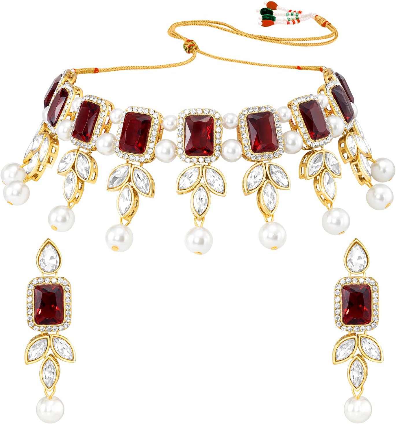 Aheli Kundan Beads Choker Necklace & Dangle Earrings Set Ethnic Traditional Bharatanatyam jewellery set Gift for Women