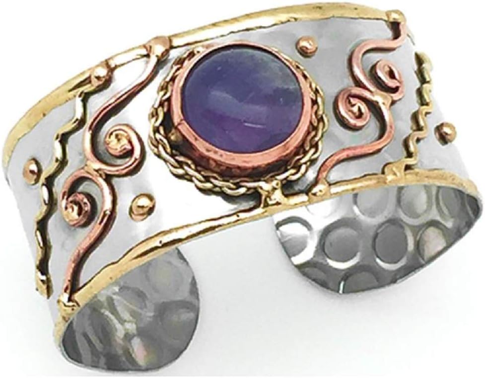 Anju Amethyst Swirl Mixed Metal Brass & Copper Cuff Bracelet