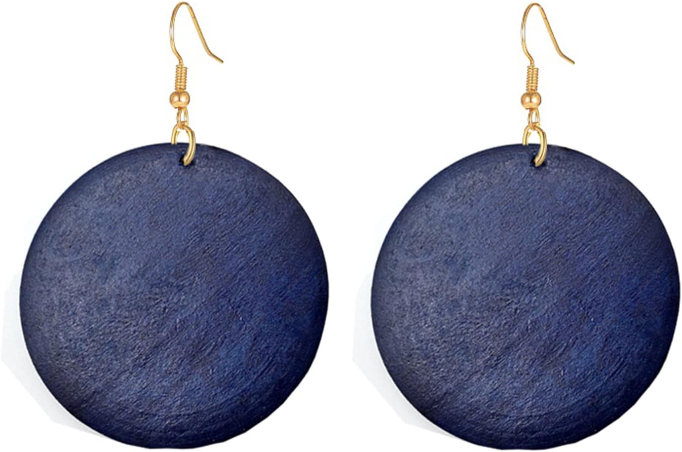 Wooden Earrings for Women Vintage African Bohemian Ethnic Wood Big Round Circle Geometric Lightweight Dangle Drop Hook Earrings