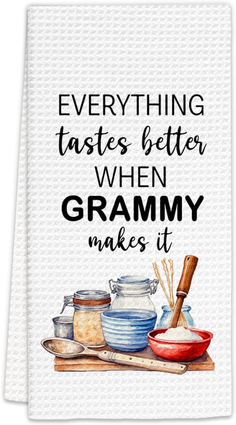 Grammy Gifts Kitchen Towels, Gifts for Grammie Dish Towels, Grammie Gift from Grandkids, Everything Tastes Better When Grammy Make It Decorative Hand Towel for Kitchens (16x24 Inch)