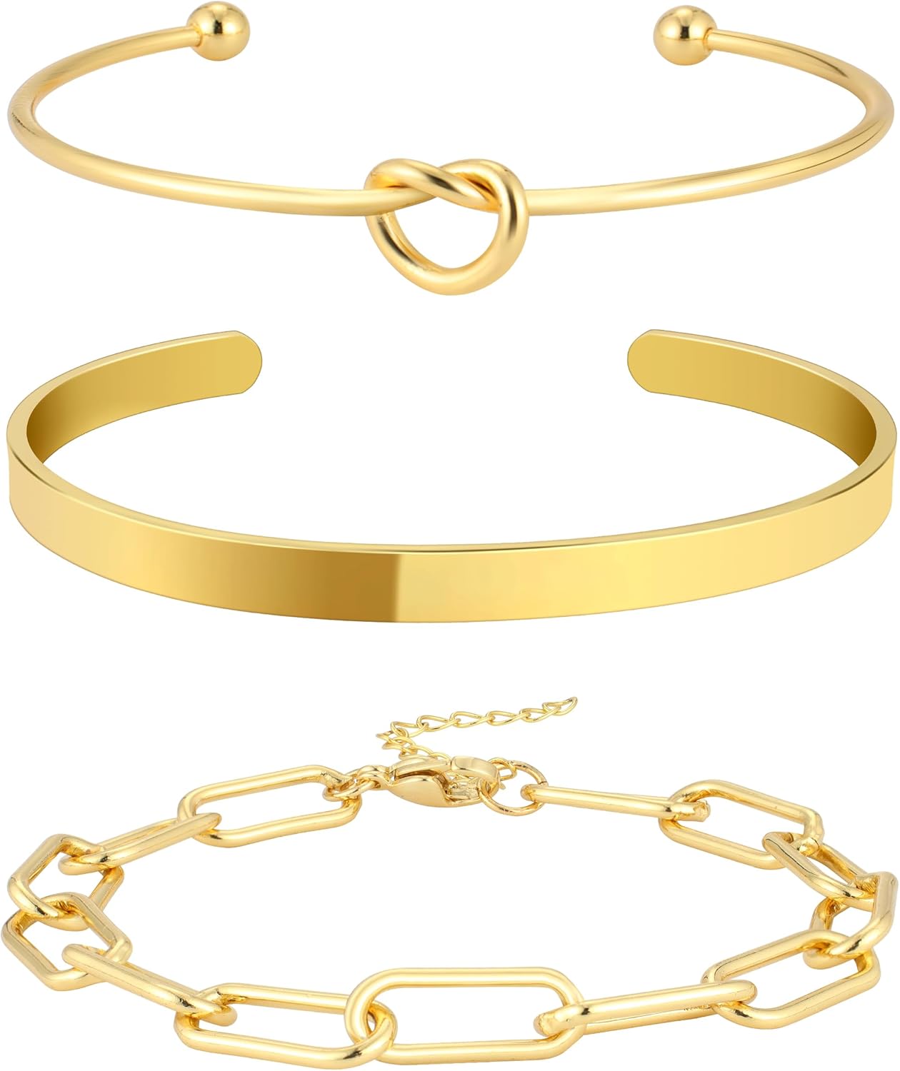 Reoxvo Gold Plated Bangle Cuff Bracelets for Women Non Tarnish Gold Bracelet Stack Jewelry Set for Women Trendy