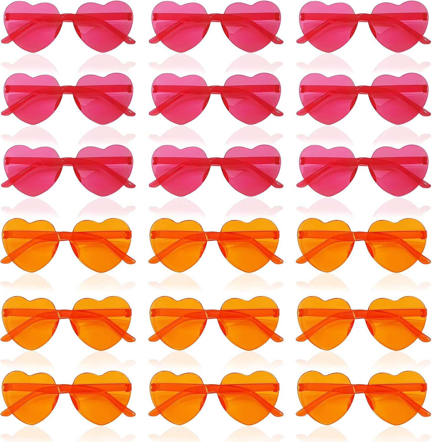 18 Pairs Pink and Orange Heart Sunglasses for Women Plastic Rimless Heart Shaped Glasses Bachelorette Party Sunglasses for Wedding, Bridal Shower, Valentine's, Sunset Party, Birthday