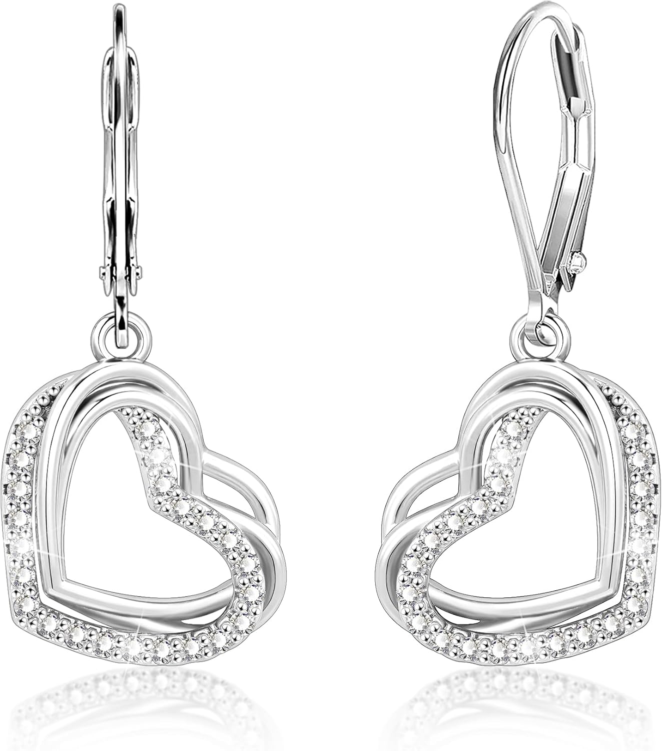 925 Sterling Silver Heart Earrings for Women, 14K Gold Plated Cubic Zirconia Dangle Earrings, Leverback Hypoallergenic Drop Earings for Women, Valentine's Day Gifts