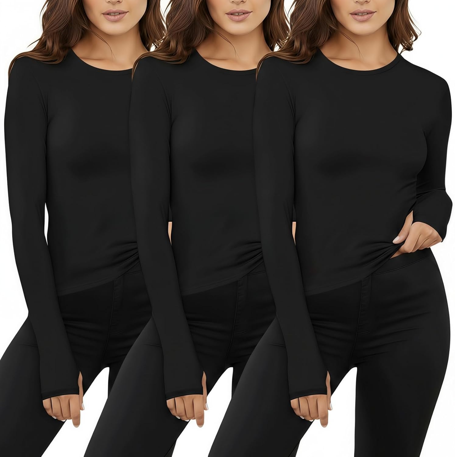 Patelai 3 Pack Women Thermal Shirts Long Sleeve Fleece Lined Undershirts Soft Crew Neck Base Layer Top Underwear Cold Weather
