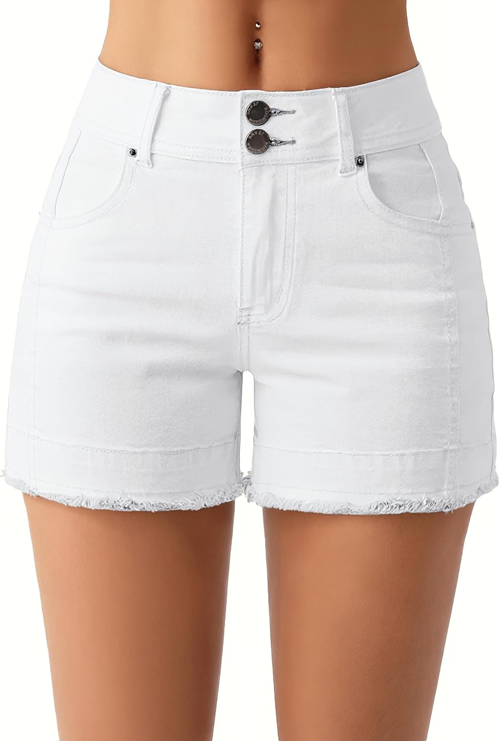 roswear Women's High Waisted Stretchy Frayed Hem Summer Denim Jean Shorts