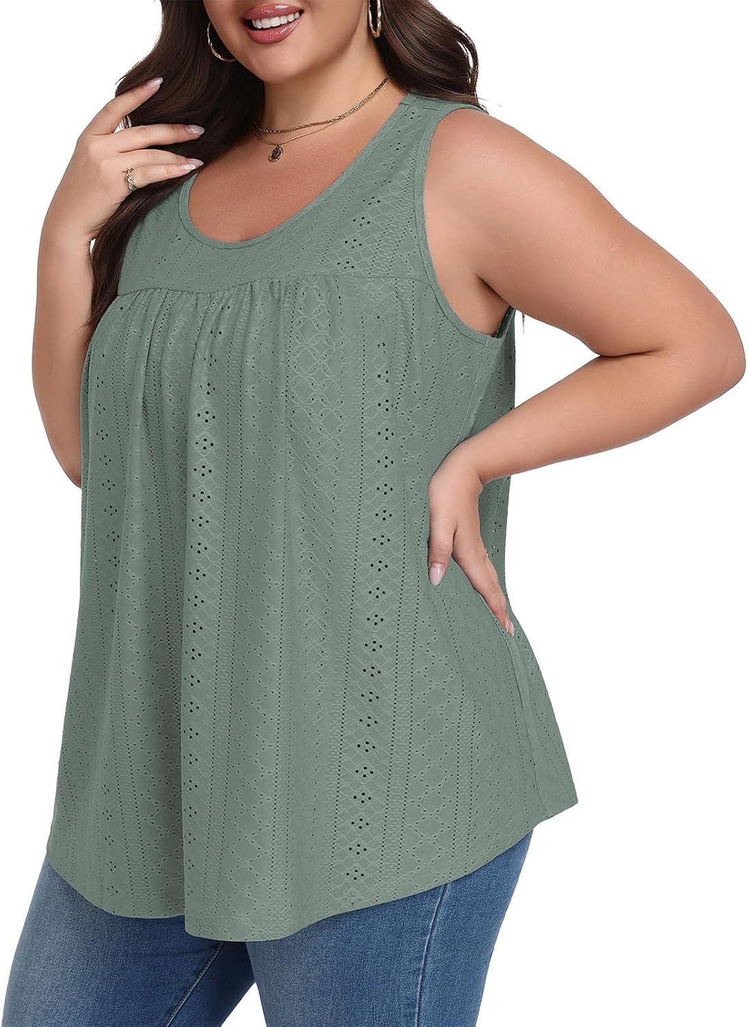 Lastshe Women's Plus Size Tank Top Tunic Flowy Loose Fit Tank Tunic with Scoop Neck Long Length for Casual Wear 1X-5X