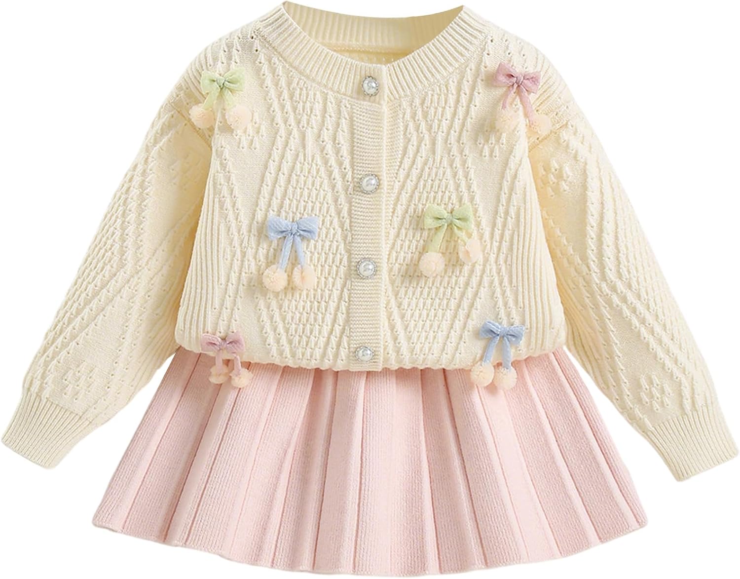 JiAmy Girls Cardigan Skirt Sets Toddler Knit Sweater and Skirt 2 Piece Winter Fall Outfit 1T-8Y