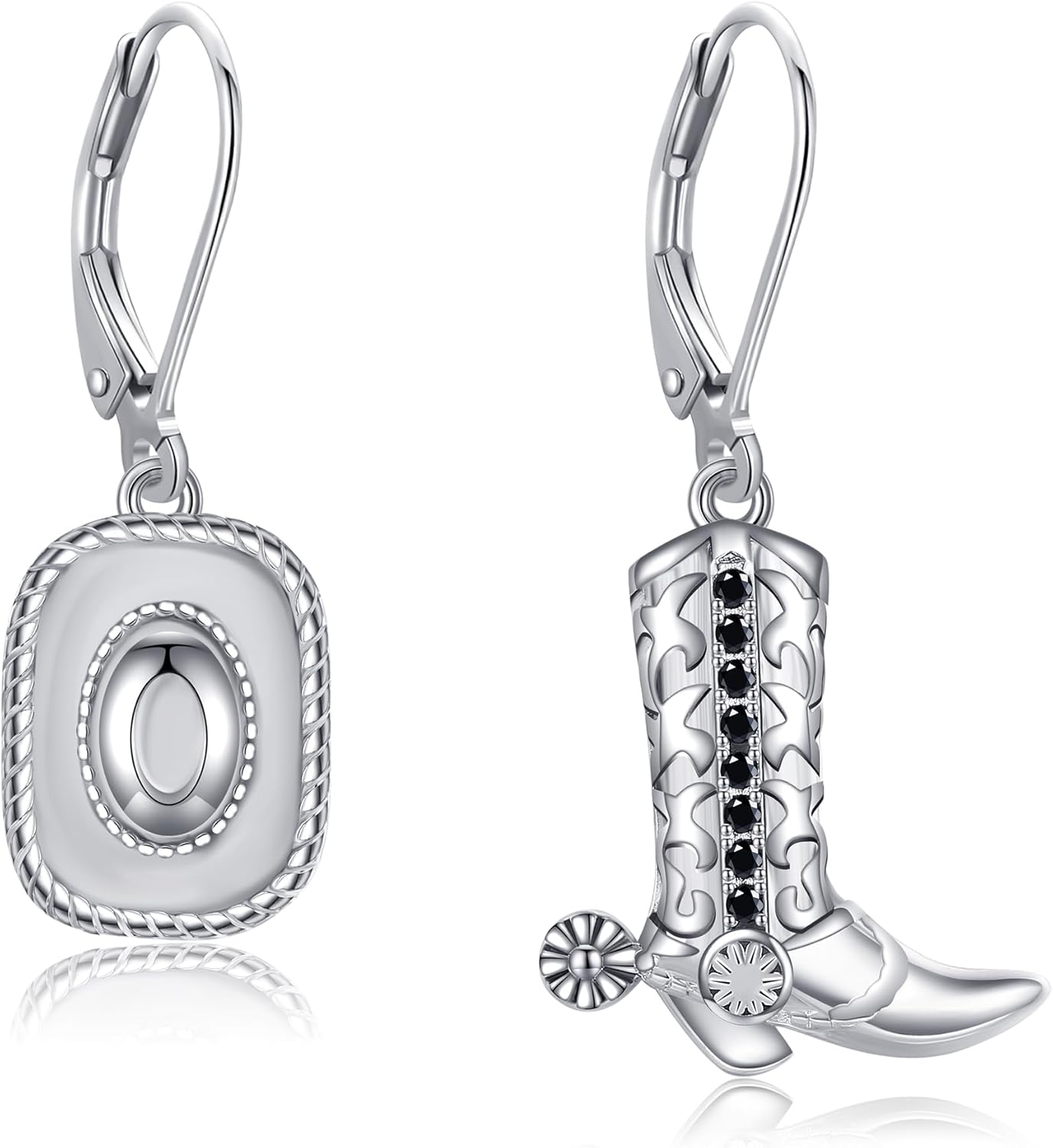 Western Earrings 925 Sterling Silver Western Cowboy Boot Dangle Earrings Texas Hat Drop Dangling Earrings Spur BohoJewelry Gift for Women Men
