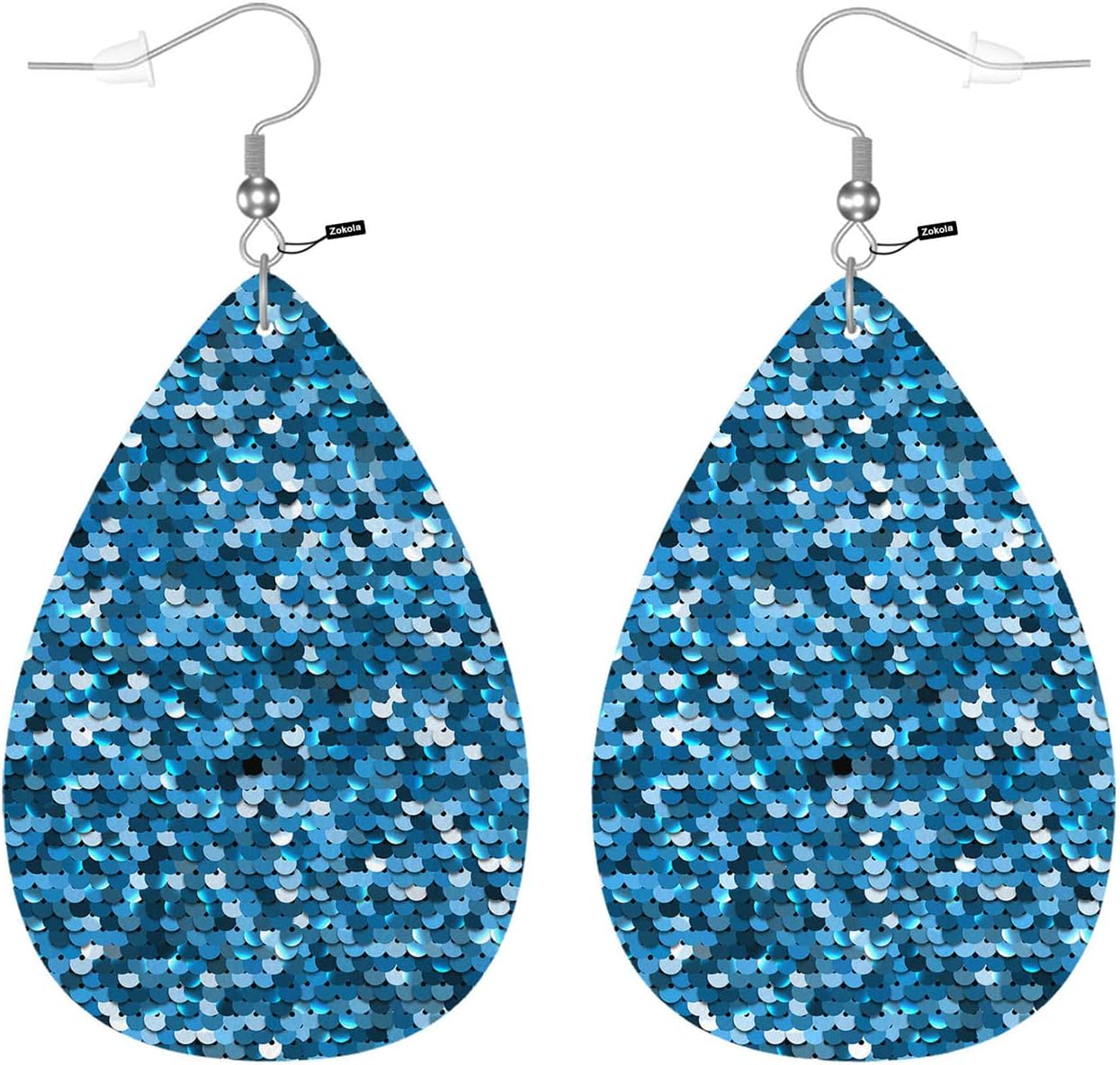Zokola Sequined Blue Tear Drop Ear Rings For Women Dangling, Shiny Blue Sequined Circles Friends Fashion Faux Leather Earrings For Bridals Wedding Party Holiday