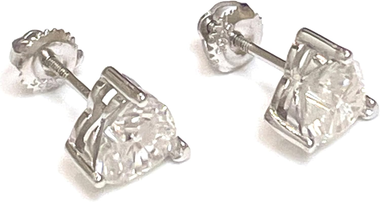 Pierre Lorren 2 carat Heart Shape Diamond Earrings SOLID Sterling SILVER 18k WHITE GOLD Vermeil Diamond Heart Solitaire Jewelry Birthday CERTIFIED Fine Earrings Studs Anniversary Valentines gift