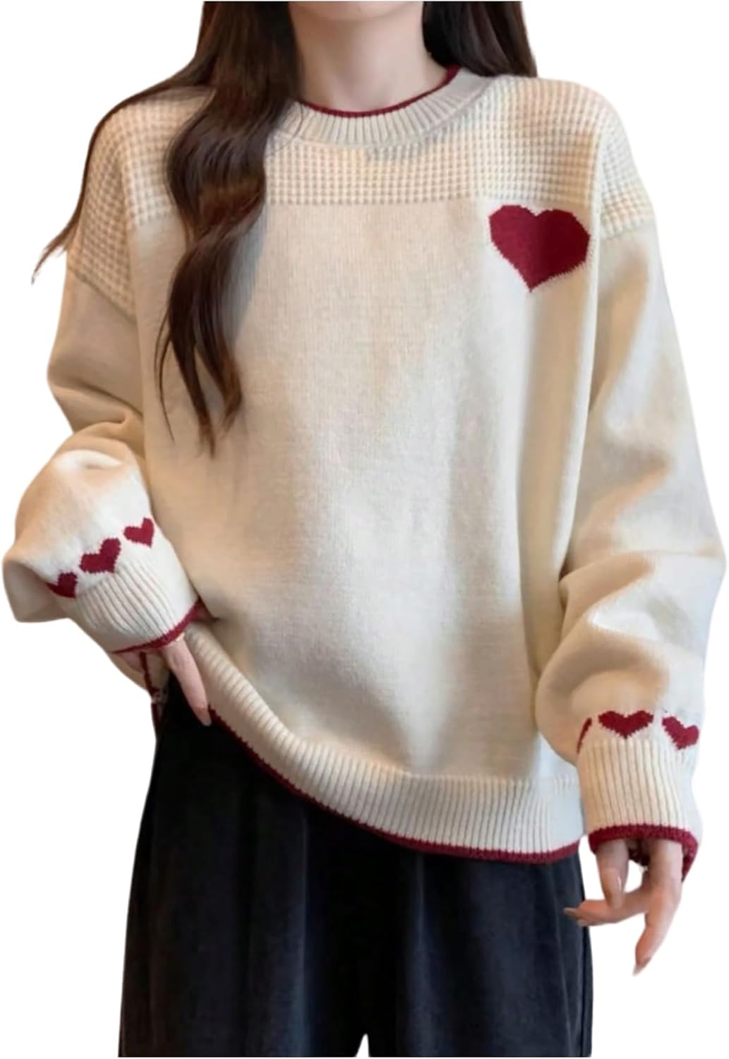 GORGLITTER Women's Heart Sweater Long Sleeve Crew Neck Cute Knitted Valentines Pullover Jumper Tops Fall Trendy