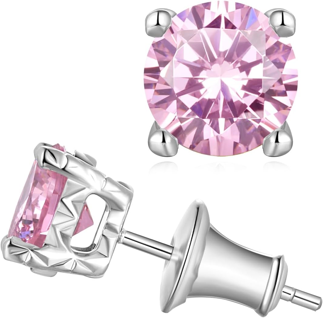 Natural Turquoise/5A Cubic Zirconia Gemstone Stud Earrings for Women, Solid 925 Sterling Silver Hypoallergenic, Birthday Valentines Anniversary Christmas Ideal Gift for Her