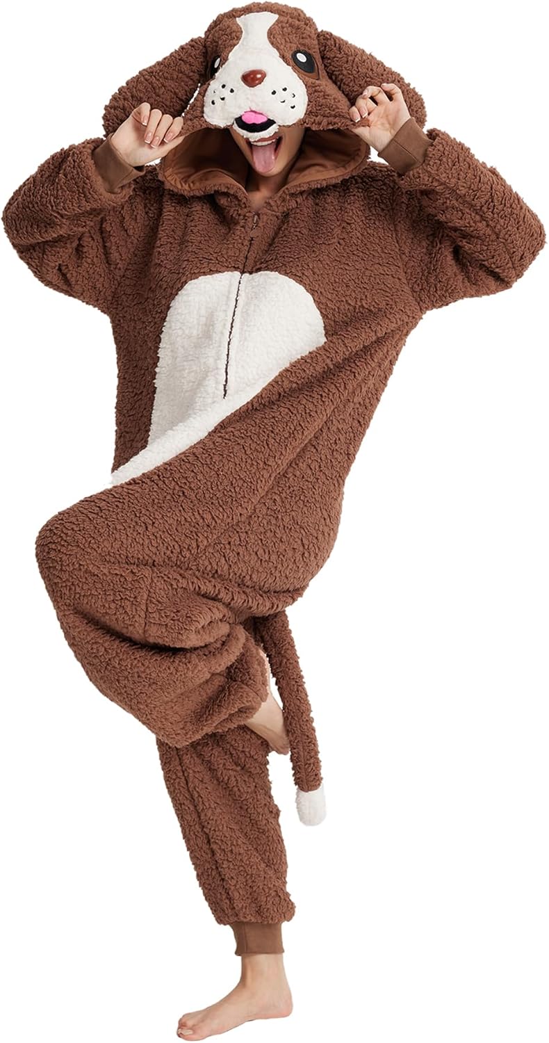 Dodheah Unisex Dog Costume for Adults Halloween Jumpsuit Springer Spaniel Cosplay Pajamas Novelty Animal One-Piece