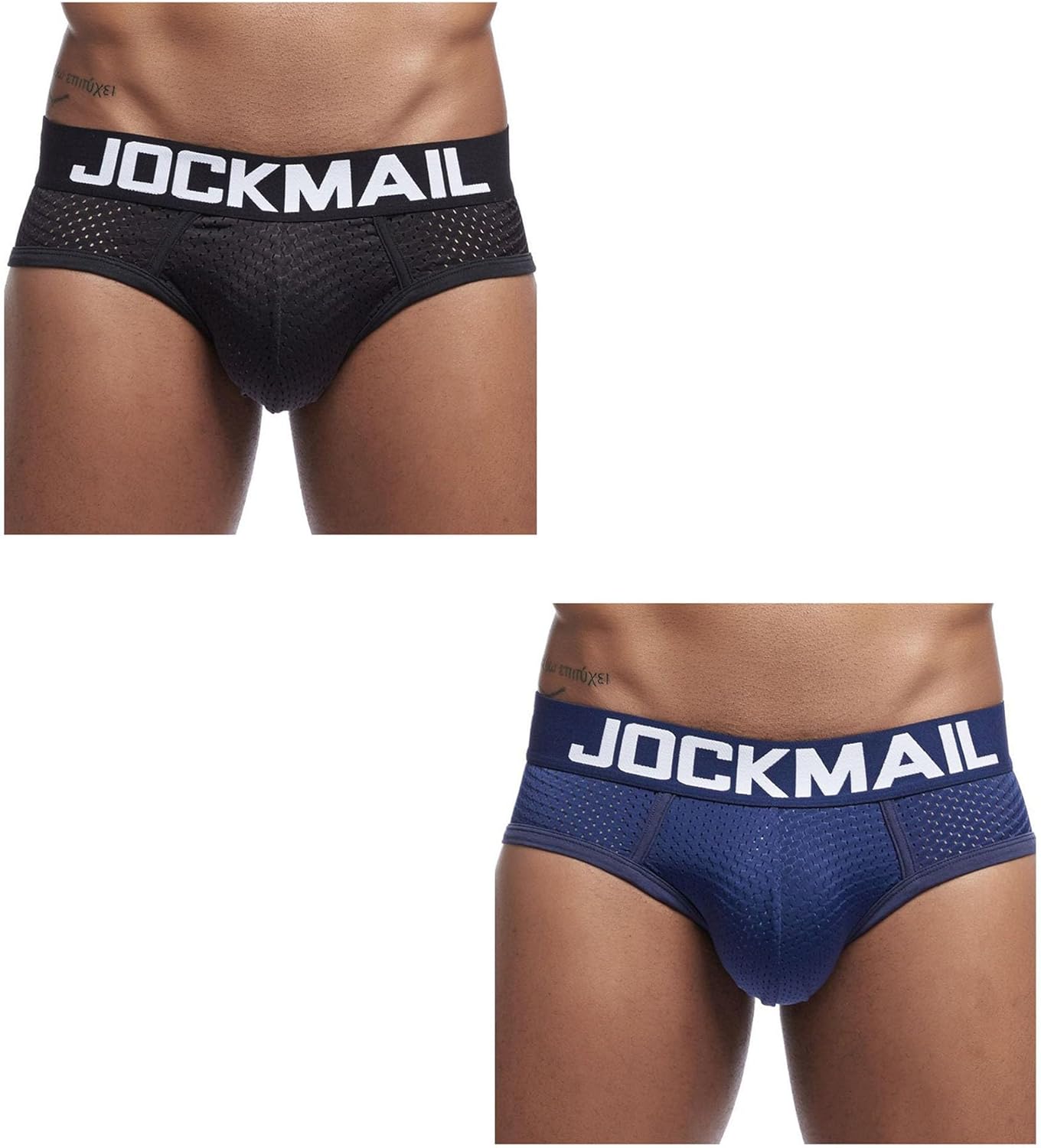 JOCKMAIL Men's Mesh Briefs Breathable Pouch Underwear Moisture-Wicking Lightweight Low Rise 2-Pack