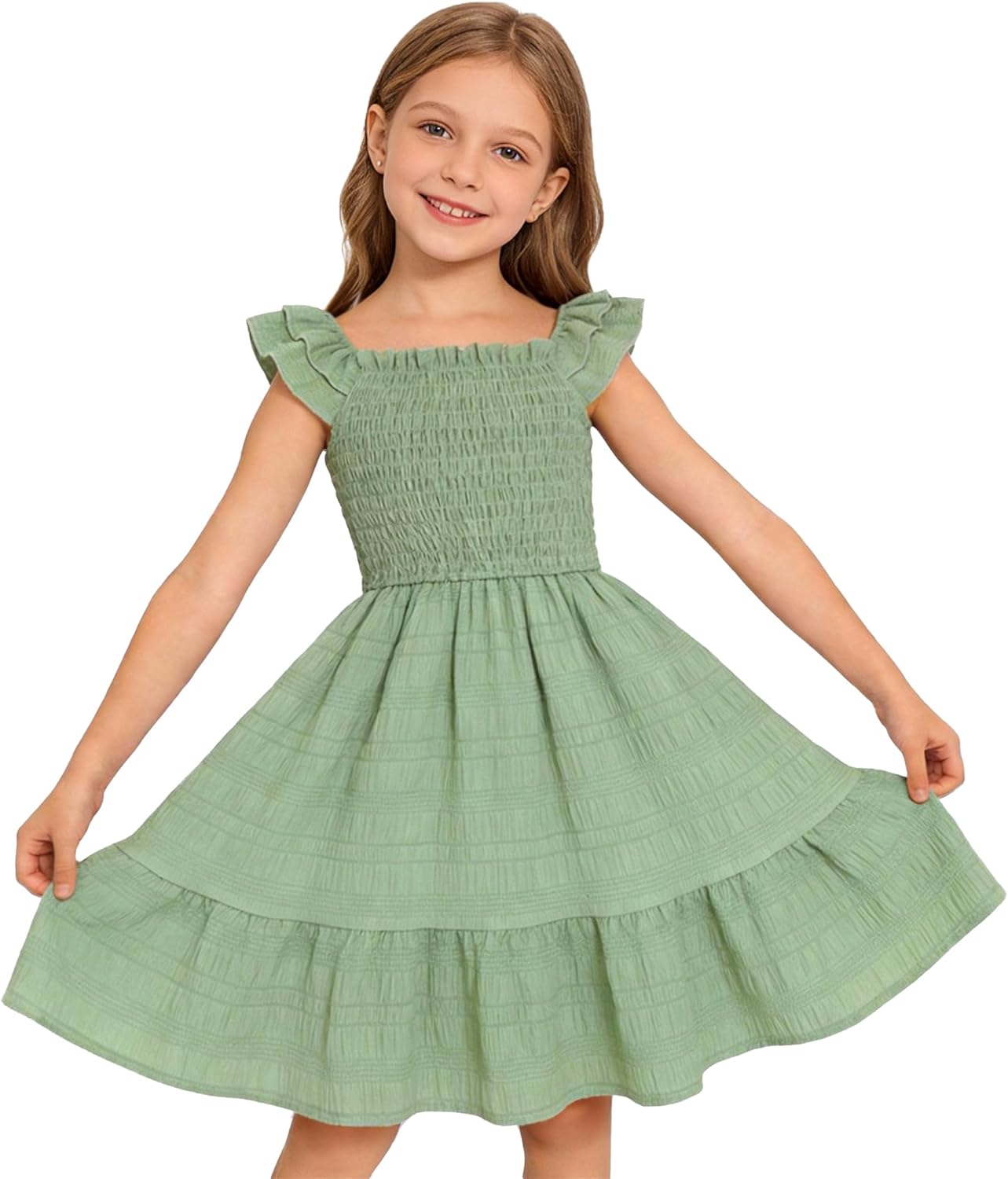 Magic Park 4-15Y Girl Ruffle Sleeve Dress Kids Linen Dresses Tween Sundress Casual Summer Clothes for Girls Holiday Outfits