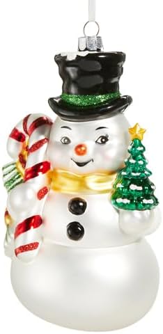 - Adorable snowman ornament dressed in festive holiday attire.