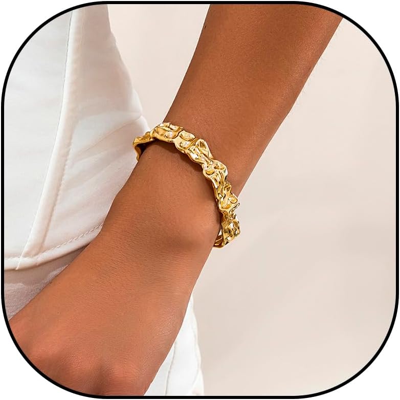 New Gold/Silver Cuff Bangle Bracelets for Women 18K Gold Plated Chunky Open Cuff Bangle Bracelets Hammered Textured Cuff Bracelet Minimalist Thick Gold Wrist Cuff Bracelets Jewelry for Women Teen Girls