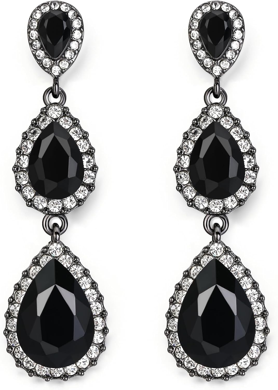 BriLove Gorgeous Shiny Rhinestones Teardrop Chandelier Long Dangle Earrings for Wedding Bridal Party Prom Jewelry Accessories