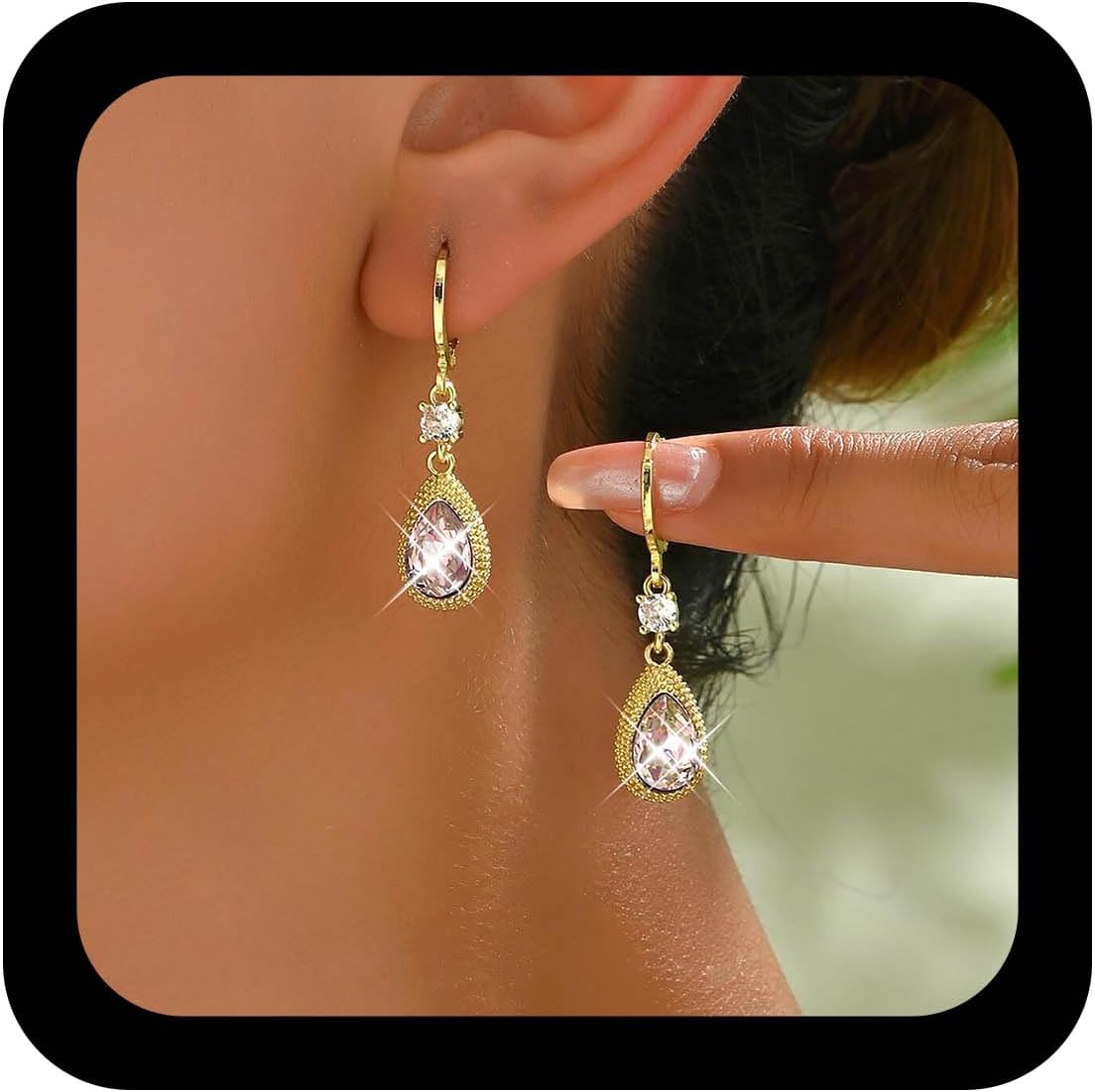 Andelaisi Boho Crystal Teardrop Earrings Vintage Rhinestone Chandelier Earrings Waterdrop Gemstone Earring Crystal Cz Wedding Bridal Earring for Women