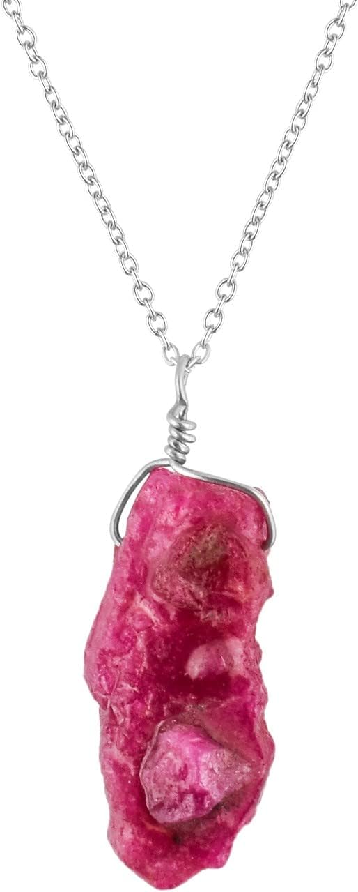 Natural Raw Pink Ruby Gemstone Dainty Pendant Necklace for Women, Healing Stone Chakra Crystal July Birthstone, 925 Stering Silver Birthday Christmas Gifts For Her