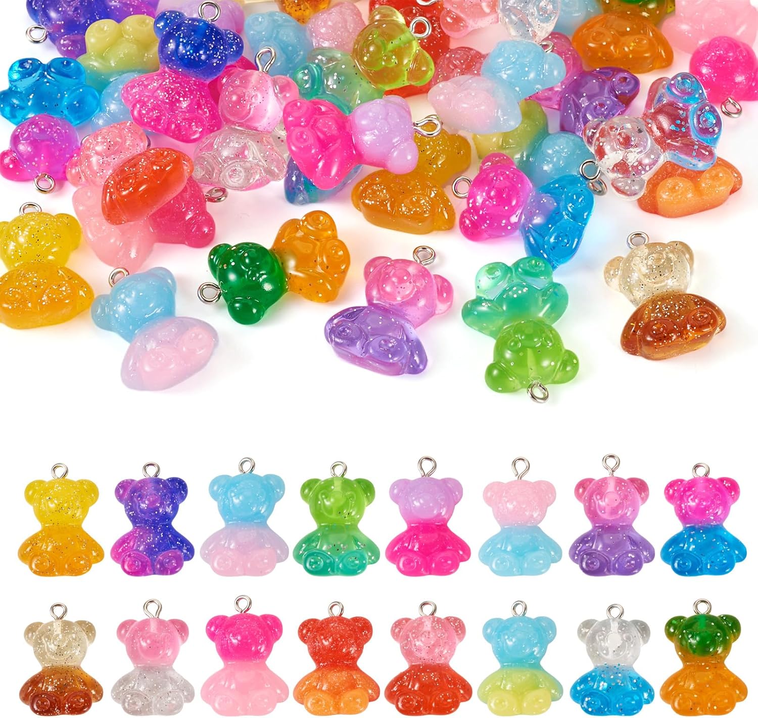 Craftdady Cute Charms Kits Resin Acrylic Bear Mushroom Flower Letter Star Pendants for Girly Crafts DIY Keychains Bracelets Jewelry Making Supplies