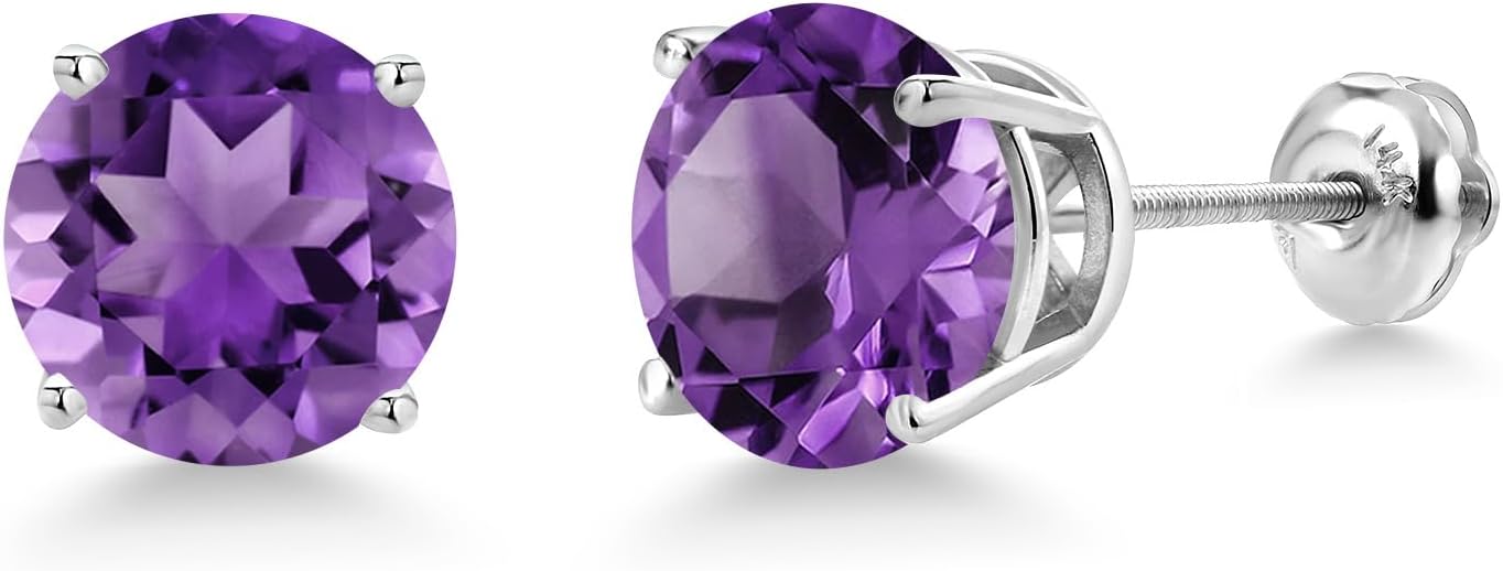 Gem Stone King 14K White Gold Purple Amethyst Stud Earrings for Women | 4.20 Cttw | Gemstone February Birthstone | Round 9MM