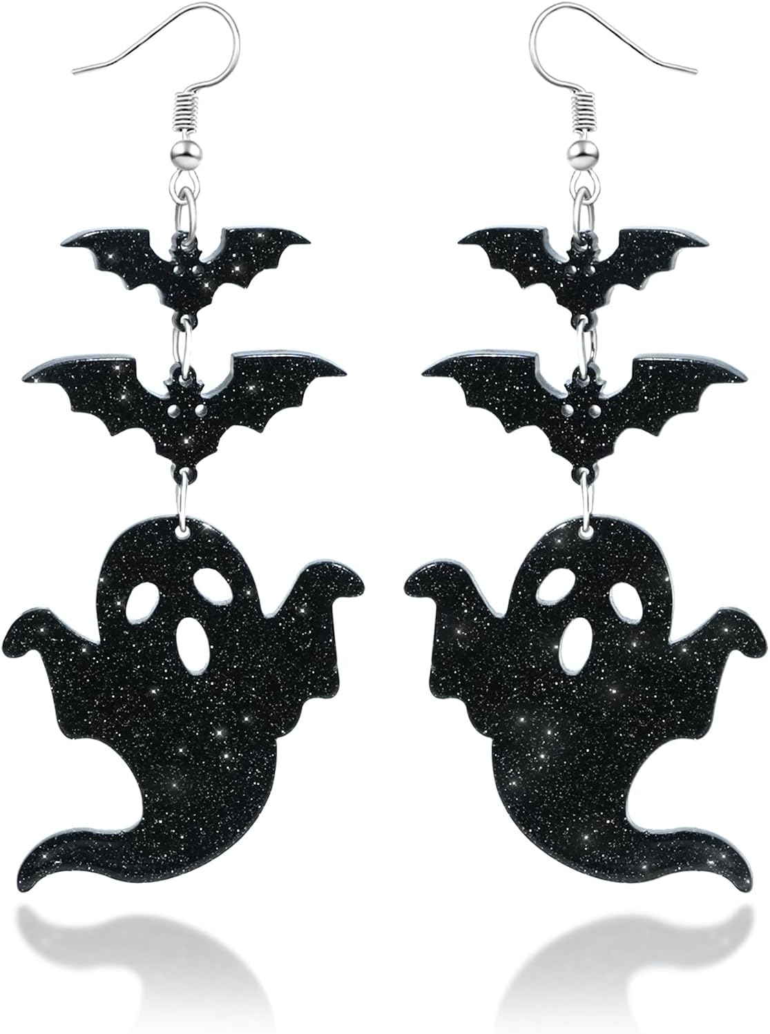 Ronglry Cute Halloween Earrings for Women Dangle Acrylic Black Gothic Earrings Goth Spider Earring Bat Ghost Earring Gothic Jewelry Accessories for Women Halloween Party Favors Decorations