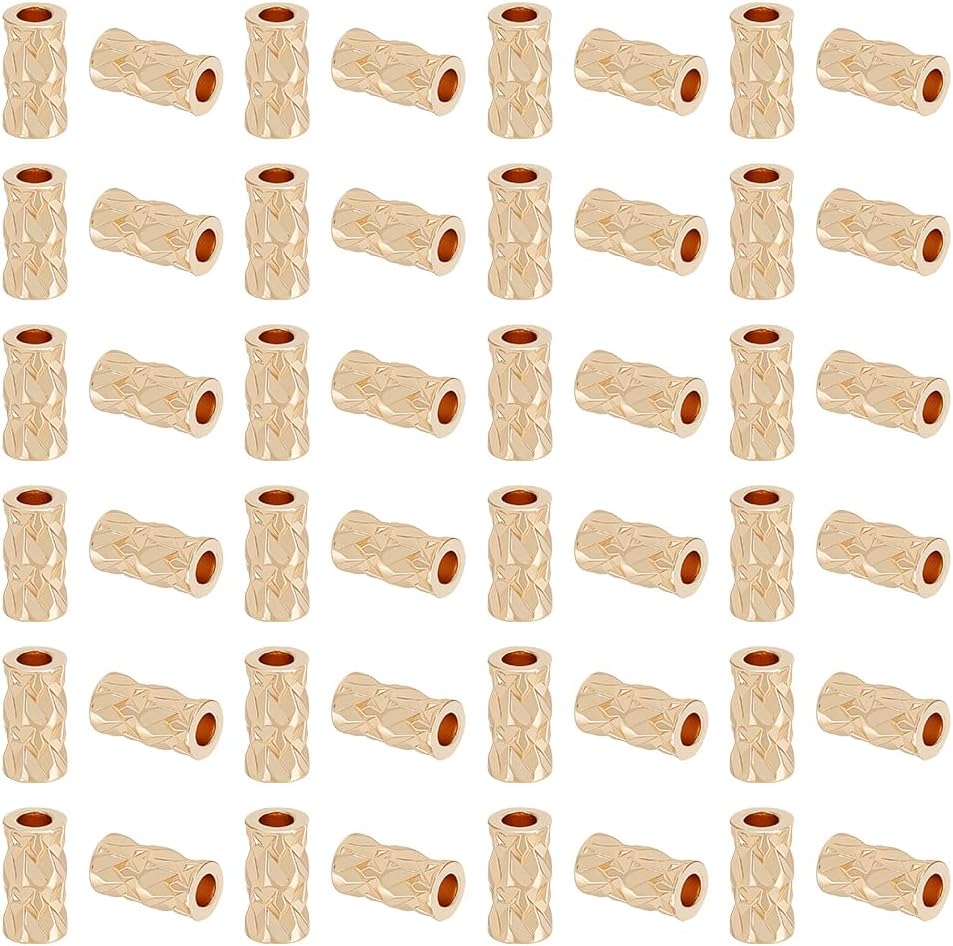 BENECREAT 50Pcs 14k Gold Filled Twist Crimp Beads, Brass Crimp Tube Beads for DIY Jewelry Making Findings, 0.23x0.12Inch, Hole: 1.6mm