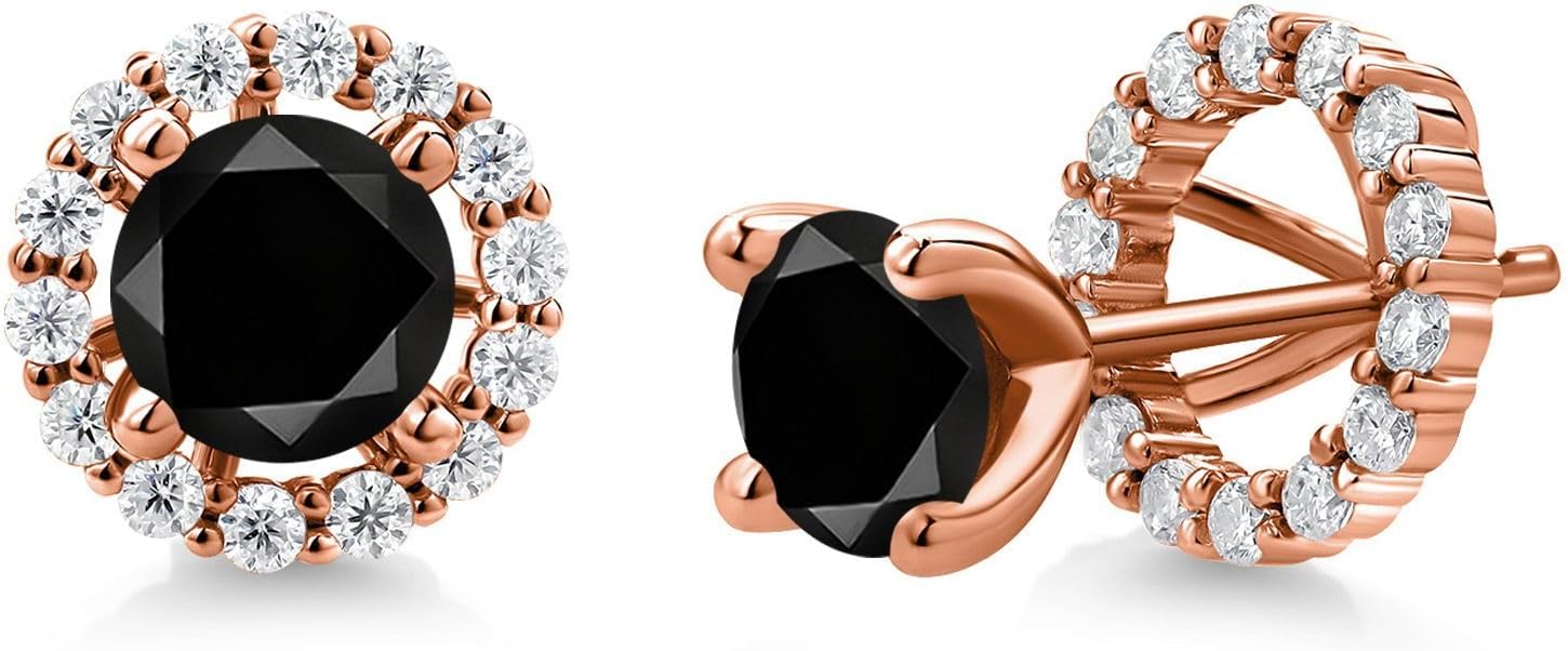 Gem Stone King 18K Rose Gold Plated Silver Stud Earrings Round Black Diamond and Moissanite (2.52 Cttw)
