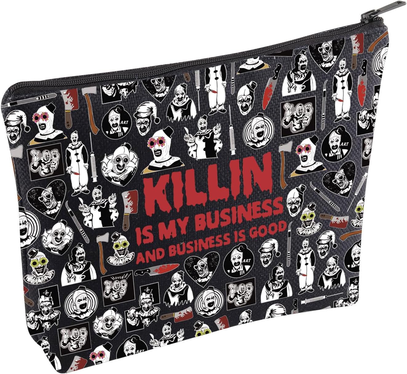 KUIYAI Clown Movie Merchandise Inspired Makeup Bag Killer Clown Cosmetic Bag Horror Movie Lover Gift Scary Clown Character Gift (KillinMupBlk)