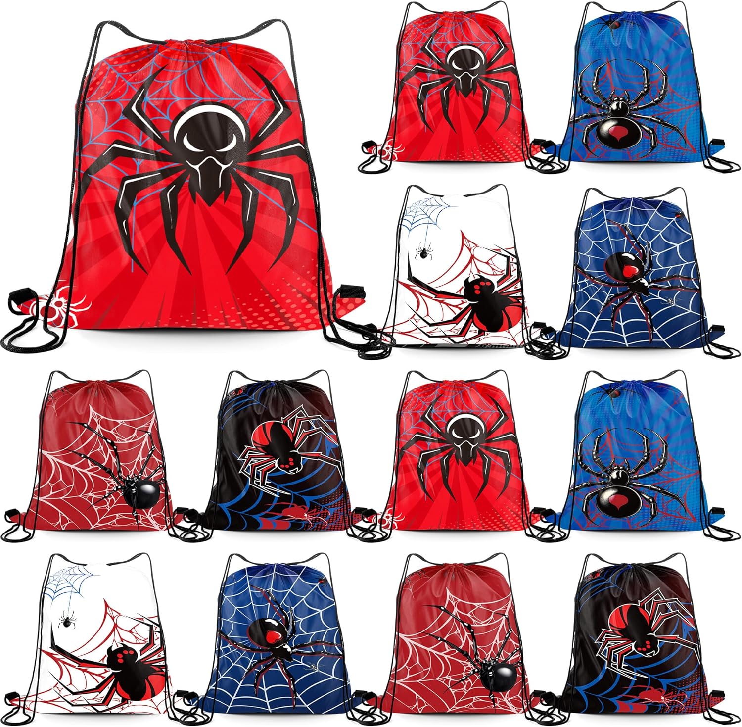 24PCS Spider Drawstring Goodie Bags - Spider Web Birthday Party Favors Candy Treat Bags for Birthday Party Decoration Supplies Backpack for Kids Boys & Girls