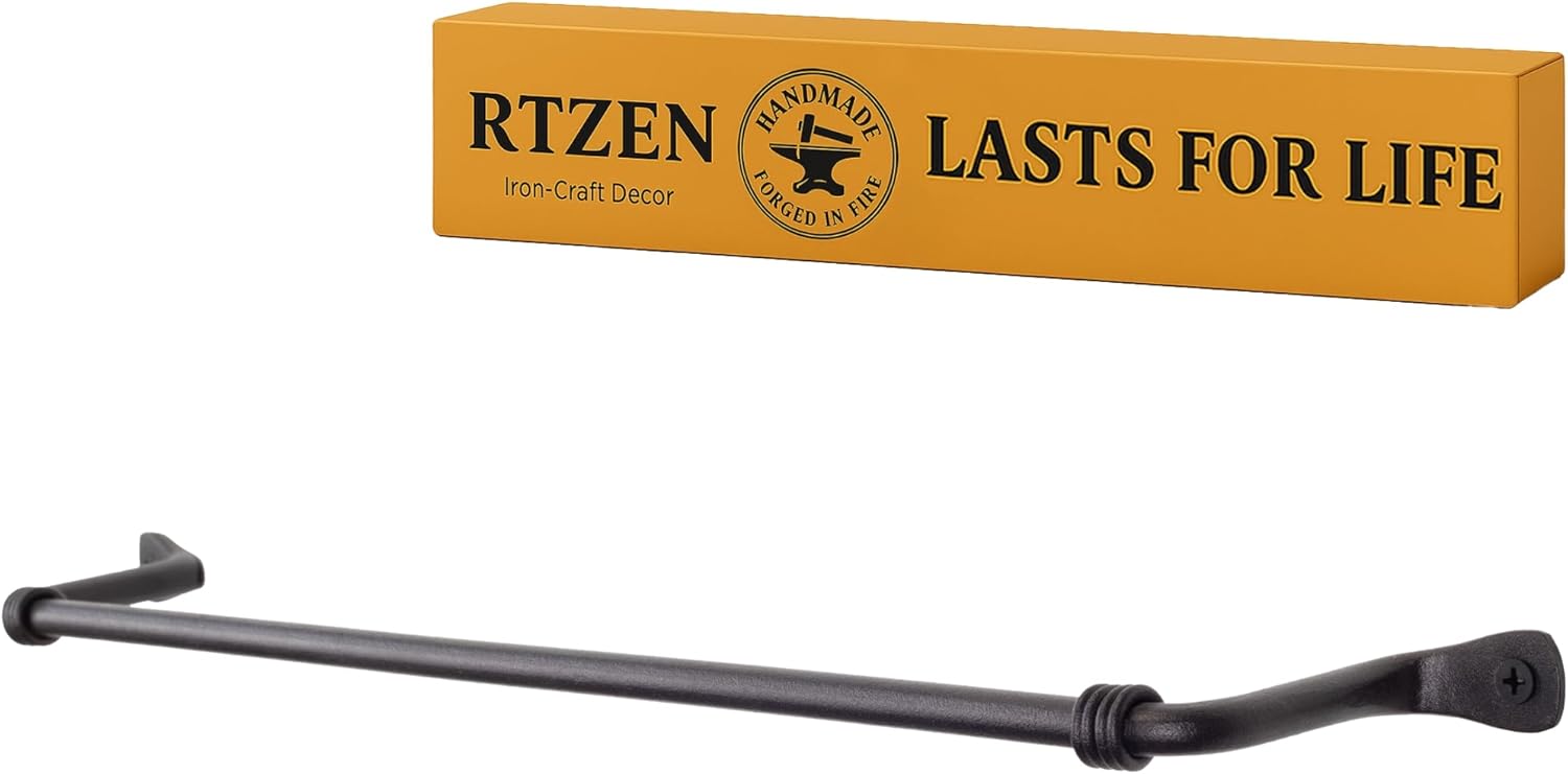 RTZEN Farmehouse Bathroom Towel Holder - Wrought Iron Matte Metal Black Towel Bar Wall Mount Rod - Handmade Home Decor Metal Kitchen Hanger Bar (17'' - Fits 14.5 Inch Towels)