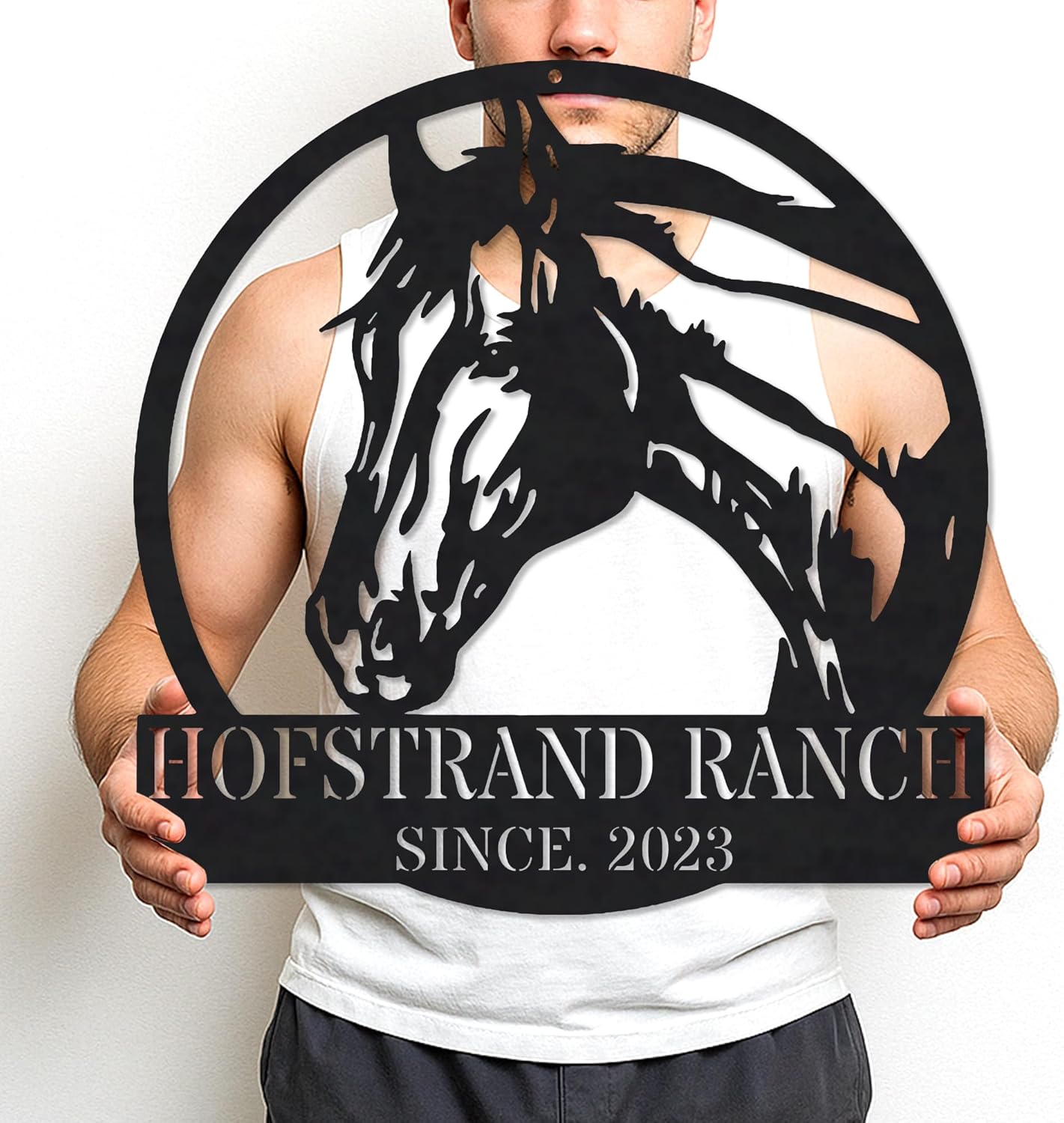 Horses Metal Personalized Farm Sign - Unique Running Horses Metal Wall Art Customized with Last Name or Horses Farm Name - Weatherproof Indoor Outdoor Family Name Sign; Gifts for Women, Men, Farmer Lover