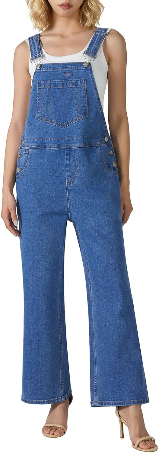 HISEA Denim Overalls Loose Fit for Women, Women's Jean Cotton Overall Bib Baggy with Barrel Leg for Summer and Work, Blue