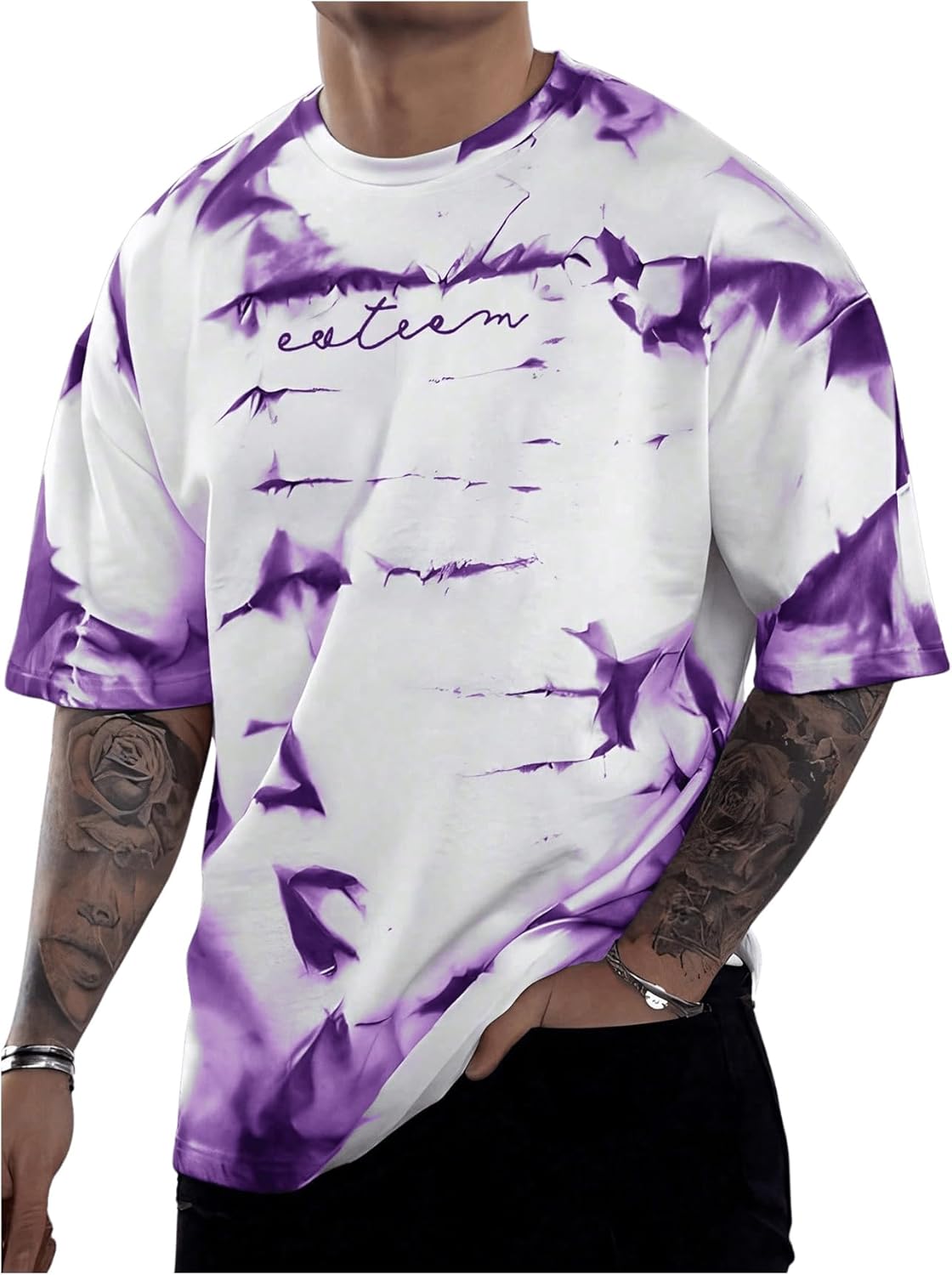 SOLY HUX Men's Graphic Tie Dye T Shirt Letter Print Crew Neck Short Sleeve Casual Summer Tee Tops